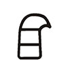 Die Ansicht der Dichtung in der Draufsicht (Geometrie) sieht dann so aus das die oben liegende Hohlkammer das Dichtungspolster zwischen Türblatt und Stahlzarge ist. In der Unterkonstruktion der Stahlzargendichtung (Steckvorrichtung) sind auch wiederum Hohlkammern die einen Halt in der Öffnung der Stahlzarge gewährleisten.
