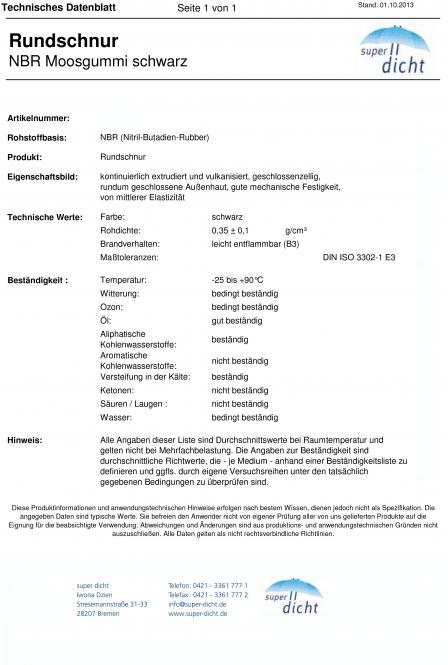 Die Moosgummi Rundschnur wird zwischen zwei Bauteile zur Dämmung, Isolierung und zur Abwendung von Vibrationen eingesetzt.