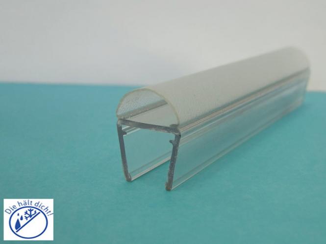 In einigen Duschtüren befinden sich Harttransparentdichtungen, die an den Glastüren aufgesteckt sind und mit einen seitlichen Anschlag auf das gegenüberliegende Duschelement dichten. Diese Duschdichtungen sind glasklar und hochtransparent.
