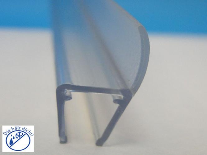In einigen Duschtüren befinden sich Harttransparentdichtungen, die an den Glastüren aufgesteckt sind und mit einen seitlichen Anschlag auf das gegenüberliegende Duschelement dichten. Diese Duschdichtungen sind glasklar und hochtransparent.