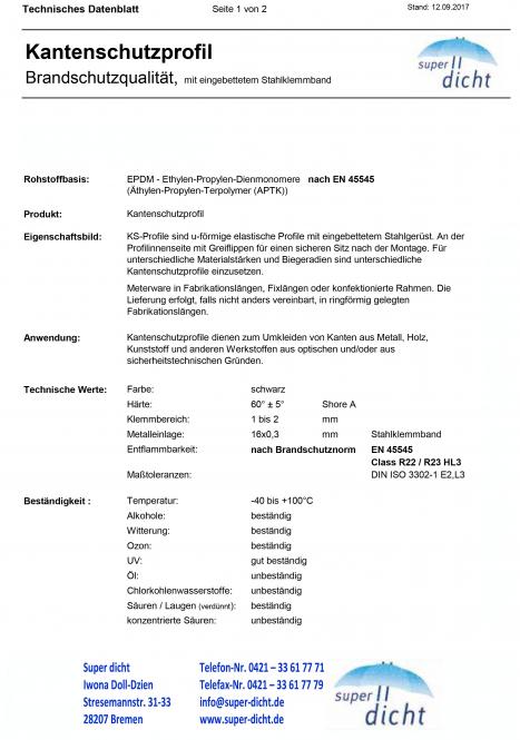 Zur dauerhaften Sicherung der statischen Vorgaben sollten die Kantenschutzdichtungen die Brandschutzvorschriften erfüllen, die dazu Sicherheitsdatenblätter geben Auskunft bei den jeweiligen Profil mit u-förmigen Querschnitt zur Anwendungen auf Falze.