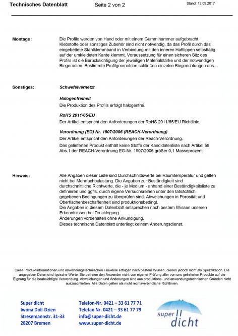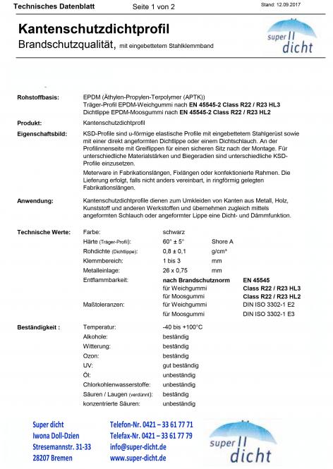 Zur dauerhaften Sicherung der statischen Vorgaben sollten die Kantenschutzdichtungen die Brandschutzvorschriften erfüllen, die dazu Sicherheitsdatenblätter geben Auskunft bei den jeweiligen Profil mit u-förmigen Querschnitt zur Anwendungen auf Falze.