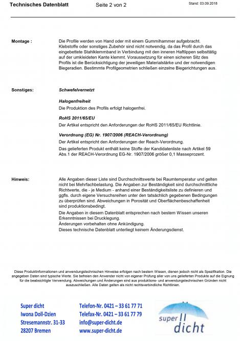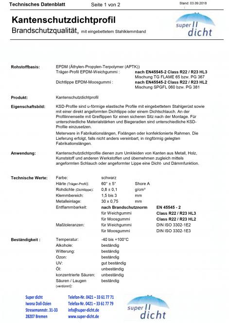 Zur dauerhaften Sicherung der statischen Vorgaben sollten die Kantenschutzdichtungen die Brandschutzvorschriften erfüllen, die dazu Sicherheitsdatenblätter geben Auskunft bei den jeweiligen Profil mit u-förmigen Querschnitt zur Anwendungen auf Falze.