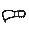 Die Ansicht der Dichtung in der Draufsicht (Geometrie) sieht dann so aus das die oben liegende Hohlkammer das Dichtungspolster zwischen Türblatt und Stahlzarge ist. In der Unterkonstruktion der Stahlzargendichtung (Steckvorrichtung) sind auch wiederum Hohlkammern die einen Halt in der Öffnung der Stahlzarge gewährleisten.