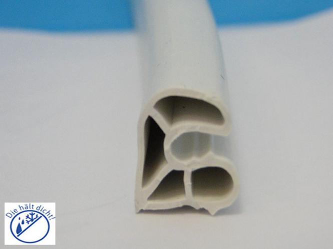 Die Ansicht der Dichtung in der Draufsicht (Geometrie) sieht dann so aus das die oben liegende Hohlkammer das Dichtungspolster zwischen Türblatt und Stahlzarge ist. In der Unterkonstruktion der Stahlzargendichtung (Steckvorrichtung) sind auch wiederum Hohlkammern die einen Halt in der Öffnung der Stahlzarge gewährleisten.
