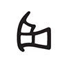 Die Ansicht der Dichtung in der Draufsicht (Geometrie) sieht dann so aus das die oben liegende Hohlkammer das Dichtungspolster zwischen Türblatt und Stahlzarge ist. In der Unterkonstruktion der Stahlzargendichtung (Steckvorrichtung) sind auch wiederum Hohlkammern die einen Halt in der Öffnung der Stahlzarge gewährleisten.