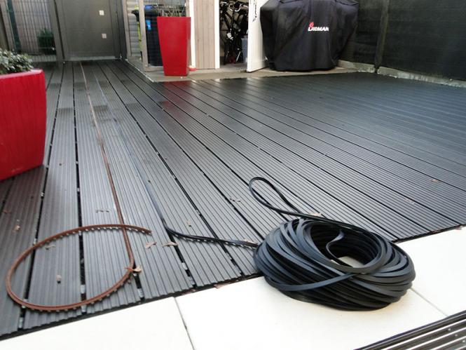 Beim Aussmessen der Dielen sollten Sie einen eventuellen Verschnitt mit einberechnen. Auf dem Grunde weil die Bodenentlüftung der Terrassenkonstruktion (Siehe Bild 5. dazu). Kleine sichtbare Vertiefungen / Spalten zwischen der Dielenfuge und der eingelegten Dichtung sollen sichtbar sein.