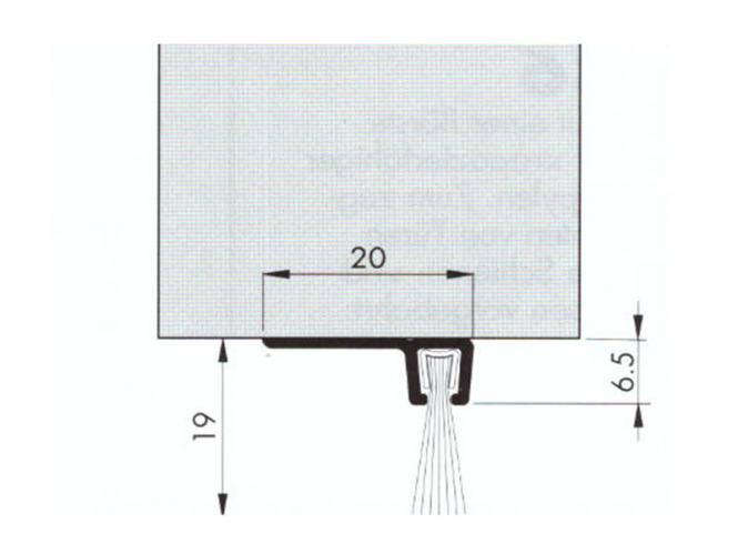 Höhe über alles: 19mm, Breite über alles: 20mm, Bürstenlänge: 18mm, Farbe: Alu-werkbank mit schwarzer Bürste, Lieferlänge: Stange á 1 + 2 Meter