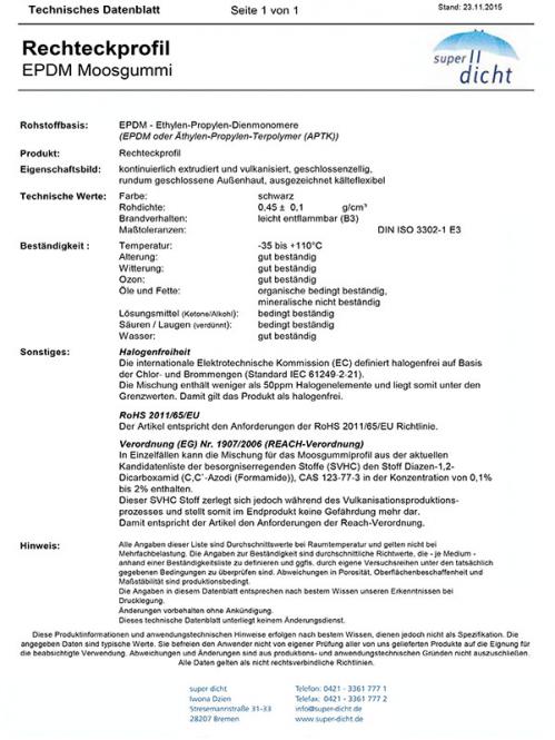 EPDM-Weich-Moosgummi ist einseitig selbstklebend und nicht selbstklebend hierfür haben wir verschiedene Datenblätter.