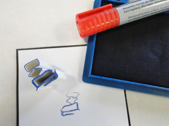 Bild 6: Die Originalkühlschrankdichtung einmal sauber durchschneiden. Den Dichtungsquerschnitt auf ein Stempelkissen drücken, falls keins zur Hand ist, ein Filzstift nehmen um das Profil einzufärben und dann auf unseren Vordruck übertragen.