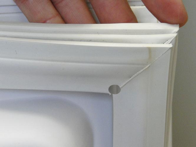 Bild 3: Die geschraubte Kühlschrankdichtung ziehen Sie im Eckbereich vorsichtig herraus um das Außenmaß zu ermitteln.