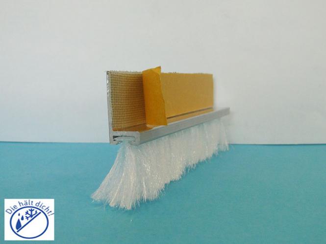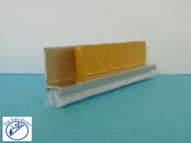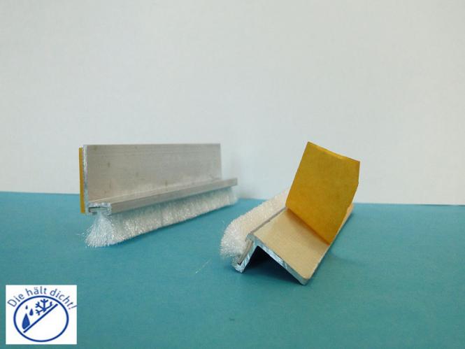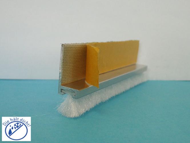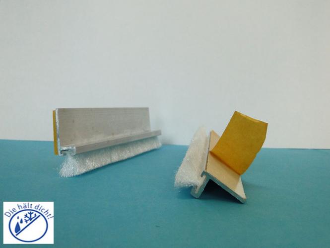 Die Klebeleiste ist stranggepresst aus Kunststoff mit einer Führung für die Velourbürste.