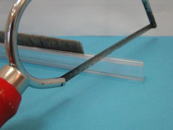 Bild 2: Die Glasschiebetürdichung wir auf die Glaskante angepasst und mit einer Puksäge auf die gewünschte Länge zugeschnitten. Die Glastür sollten Sie vorher mit Azeton oder Spiritus reinigen, ein Glasreiniger tuts aber auch.