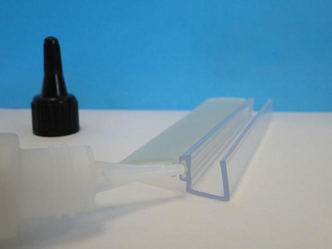 Bild 2: Die Glasschiebetürdichung wir auf die Glaskante angepasst und mit einer Puksäge auf die gewünschte Länge zugeschnitten. Die Glastür sollten Sie vorher mit Azeton oder Spiritus reinigen, ein Glasreiniger tuts aber auch.