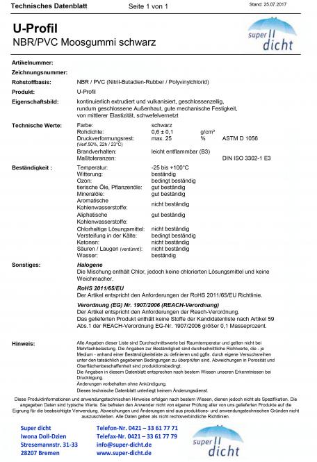 Produktinformationen "Moosgummi U- Profil Aga Höhe: 15 x Breite: 12 mm"