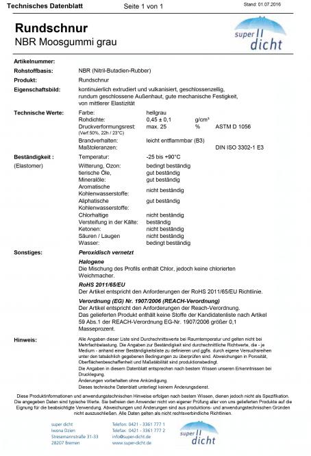 Produktinformationen "Moosgummi Rundschnur grau NBR"