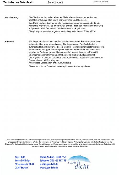 Klebekraft > N/25mm Materialbruch gemäß DIN EN 1939