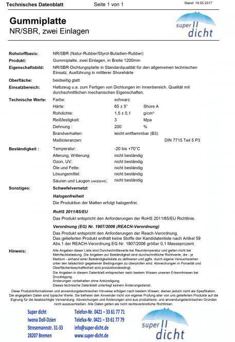 NR/SBR 70 +/- 5° ShoreA, hell, mit 2 Einlagen