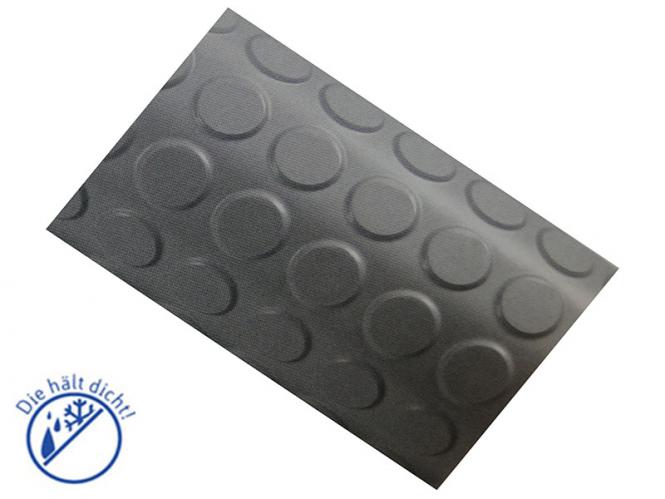 Noppenmatten mit großen Ringmuster besitzen einen Oberflächenaufsatz. Durch die hohen Gumminoppen haben Sie alle Vorraussetzungen für eine effektive Rutschhemmung. Sie kleiden den Bodenbereich für viele Kraftfahrzeuge und Anhänger aus.