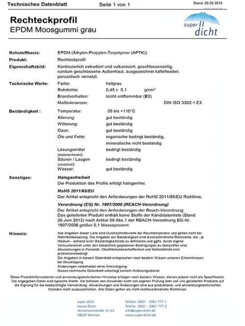 Produktinformationen "Moosgummi grau 5x25mm Maruda Rechteckprofil EPDM"