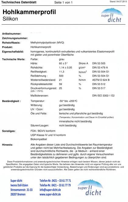 Coma Hö: 19mm, Br: 20mm Silikon Hohlkammerprofil