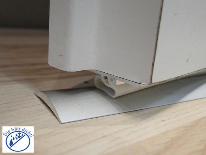 Höhe über alles in Varianten bestellbar (Bodenleiste+Dichtungsschlauch+Türblattschiene): 16mm, 18mm und 23mm,