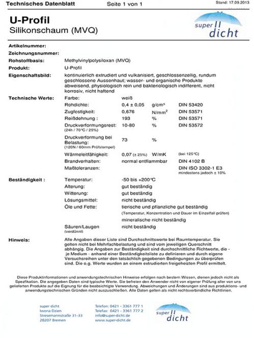 Produktinformationen "Masana Hö: 13mm, Br: 9mm Silikonschaum U-Profil Farbe: weiss"