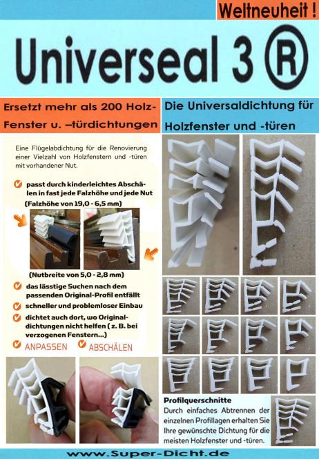 Universeal 3: Universaldichtung für Holzfenster und Holztüren mit Nut