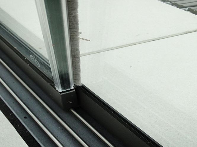 Die Glasdichtungen werden nun aufgeklemmt und dichten die beiden Glasscheiben der Schiebetüren nebeneinander ab.