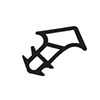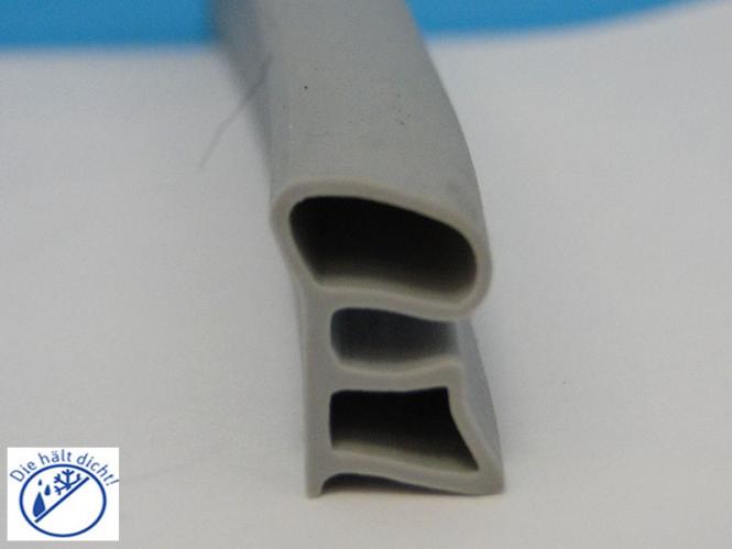 Die Ansicht der Dichtung in der Draufsicht (Geometrie) sieht dann so aus das die oben liegende Hohlkammer das Dichtungspolster zwischen Türblatt und Stahlzarge ist. In der Unterkonstruktion der Stahlzargendichtung (Steckvorrichtung) sind auch wiederum Hohlkammern die einen Halt in der Öffnung der Stahlzarge gewährleisten.